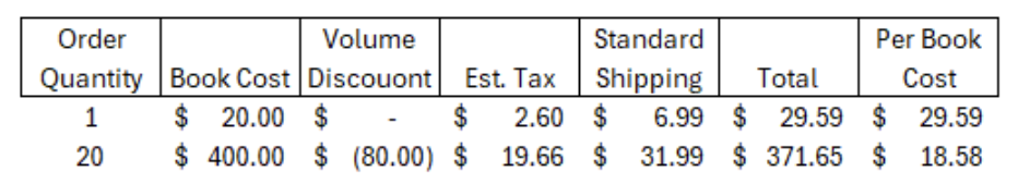 - Determine how many books you will need. Plan ahead to take advantage of bulk pricing and to allow time for shipping. Shipping time for our test orders have been about one week, but could be two weeks.