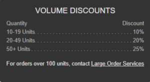 - Quantity Discounts: Apply automatically for bulk orders (see example below).